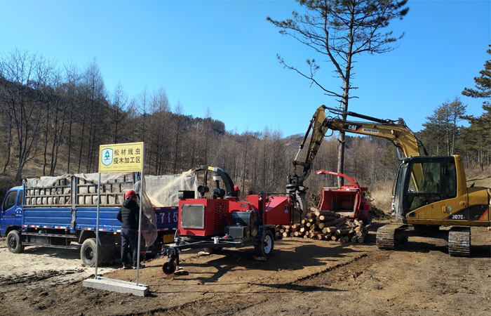 綠友集團(tuán)總部森防裝備事業(yè)部、售后服務(wù)部、撫順綠友園林機(jī)械有限公司協(xié)同在撫順市大伙房實(shí)驗(yàn)林場現(xiàn)場給參會人員講解、演示了GREENMAN CM15R病疫木粉碎機(jī)、CH25C病疫木粉碎機(jī)在山場就地粉碎處理感染松材線蟲病疫木方案,與會嘉賓紛紛記錄、拍照,索取資料,積極響應(yīng)國家關(guān)于松材線蟲病疫木山場就地粉碎處理的相關(guān)政策。