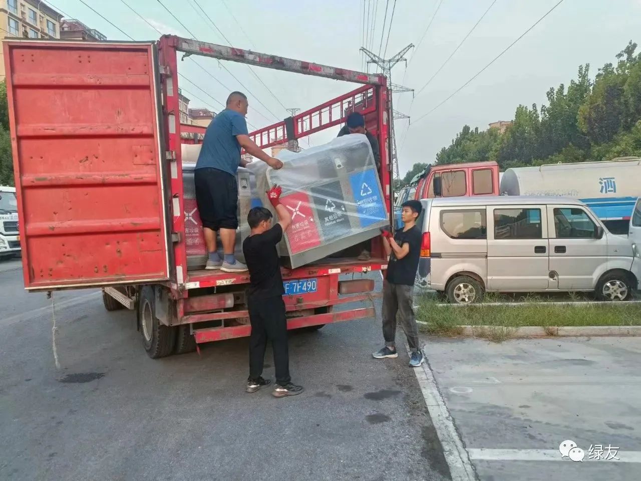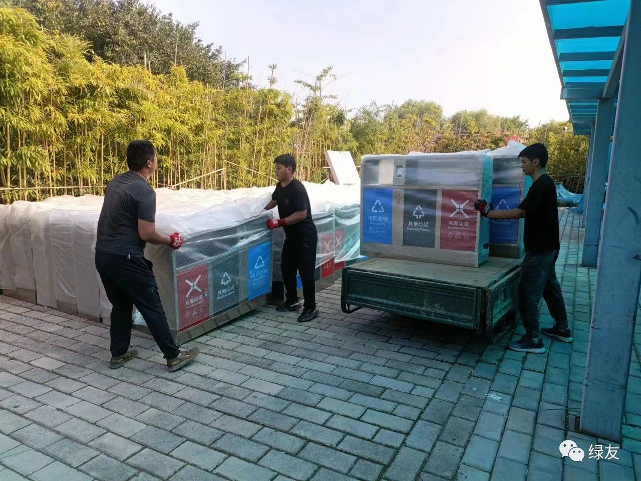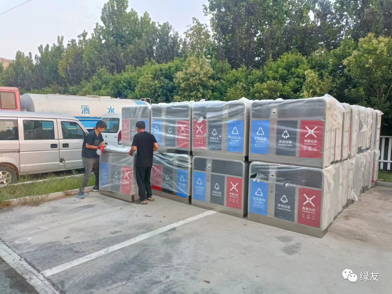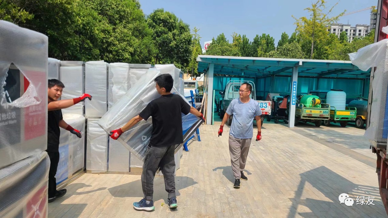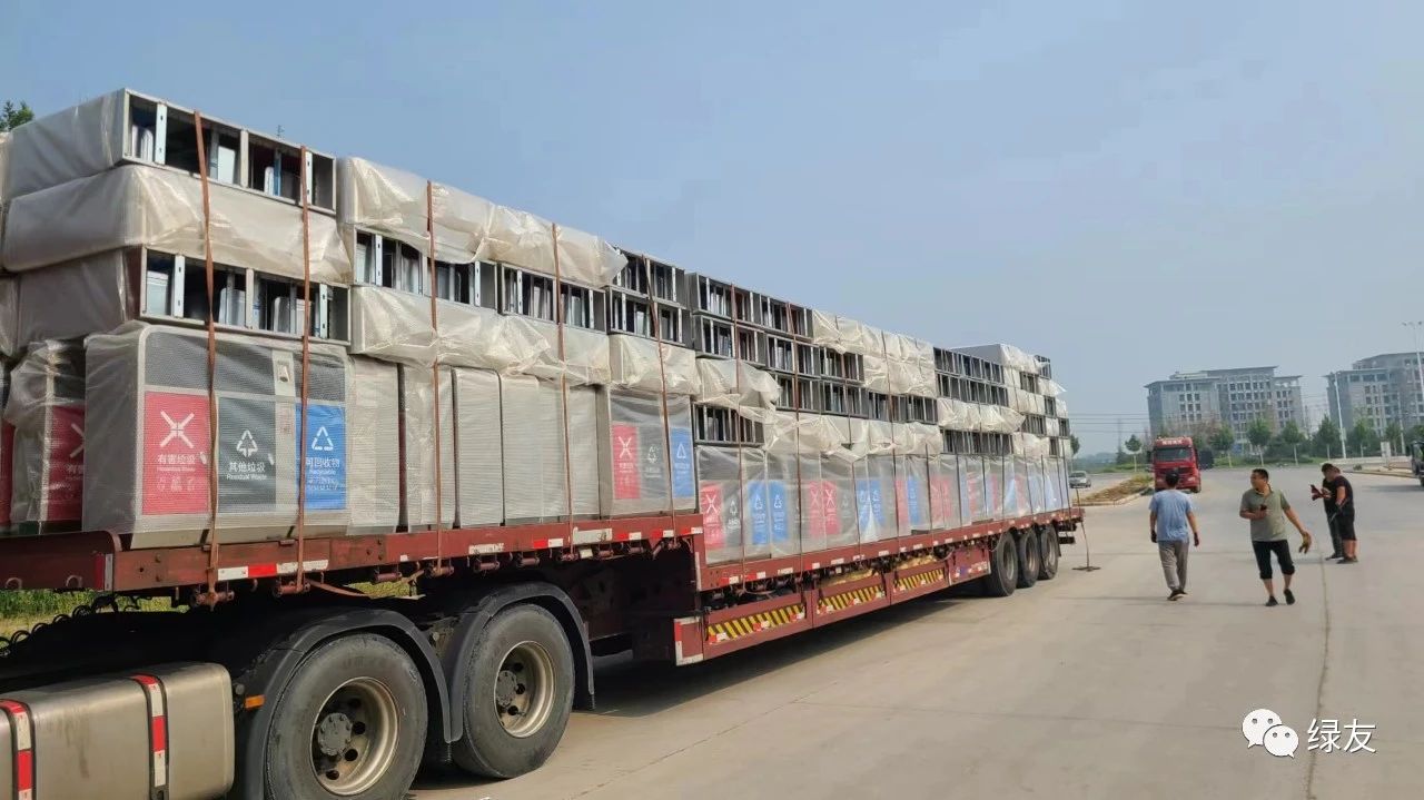 垃圾桶順利交付,鄭州綠友的同事露出了笑臉。他們用行動讓客戶感受“有綠友為友,無后顧之憂!”