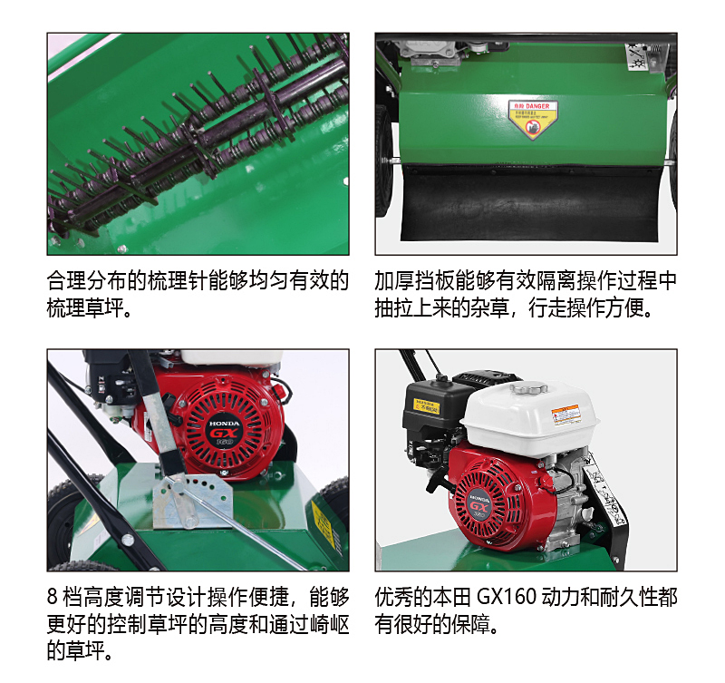 草坪生長一段時間后,底部會結出一層枯草層,時間一長,不參加光合作用,會霉變腐爛,滋生霉菌,阻礙土壤吸收氧份,導致草坪枯萎,使草坪生長不良,草坪很難看,這時噴灑藥物,不能治本,應將枯草清除。梳草機就很省事的能把枯草去除。